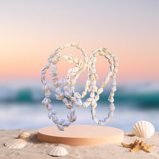 36" Leis Shell Necklace White, Tan & Brown Nassa & Bubble Shells