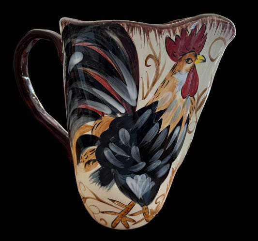 9.25" Dario Farrucci Hand Painted Rooster Large Pitcher
