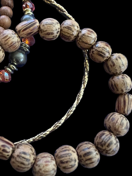 4 Stretch Bracelets Browns, Beads & Goldtone