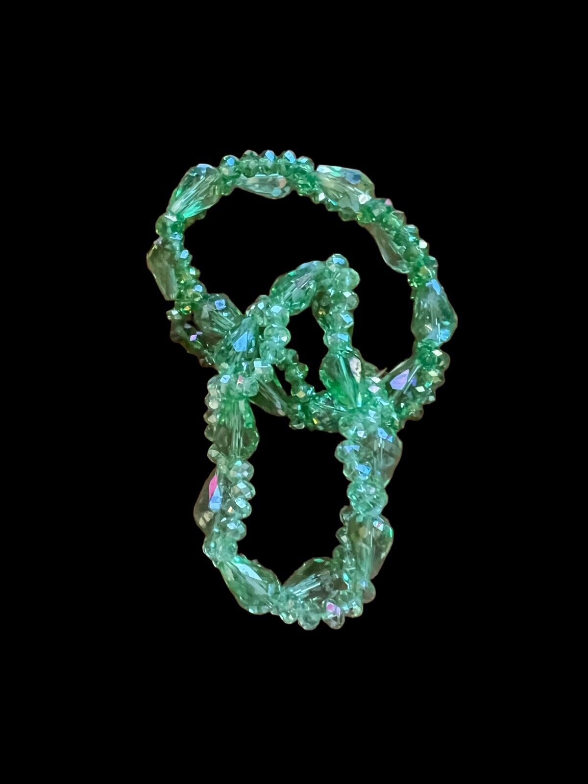 Vintage Ancient Style Ladies Green Glass Double Row 2 Bracelets Fashion Jewelry